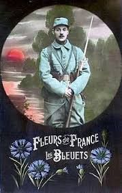 Dans le jargon militaire, les « Bleuets » étaient les soldats de la Classe 17, nés en 1897. Fraîchement arrivés sur le champ de bataille du Chemin des Dames, ces jeunes recrues furent surnommés ainsi par les Poilus plus anciens car ils portaient le nouvel uniforme bleu horizon, là où les vétérans arboraient encore, au début de la guerre, le désastreux pantalon rouge garance.